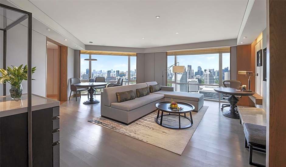 Room comes with a separate living room, bedroom and spacious balcony with sun deck and four-seater table with panoramic views over the Bangkok skyline.